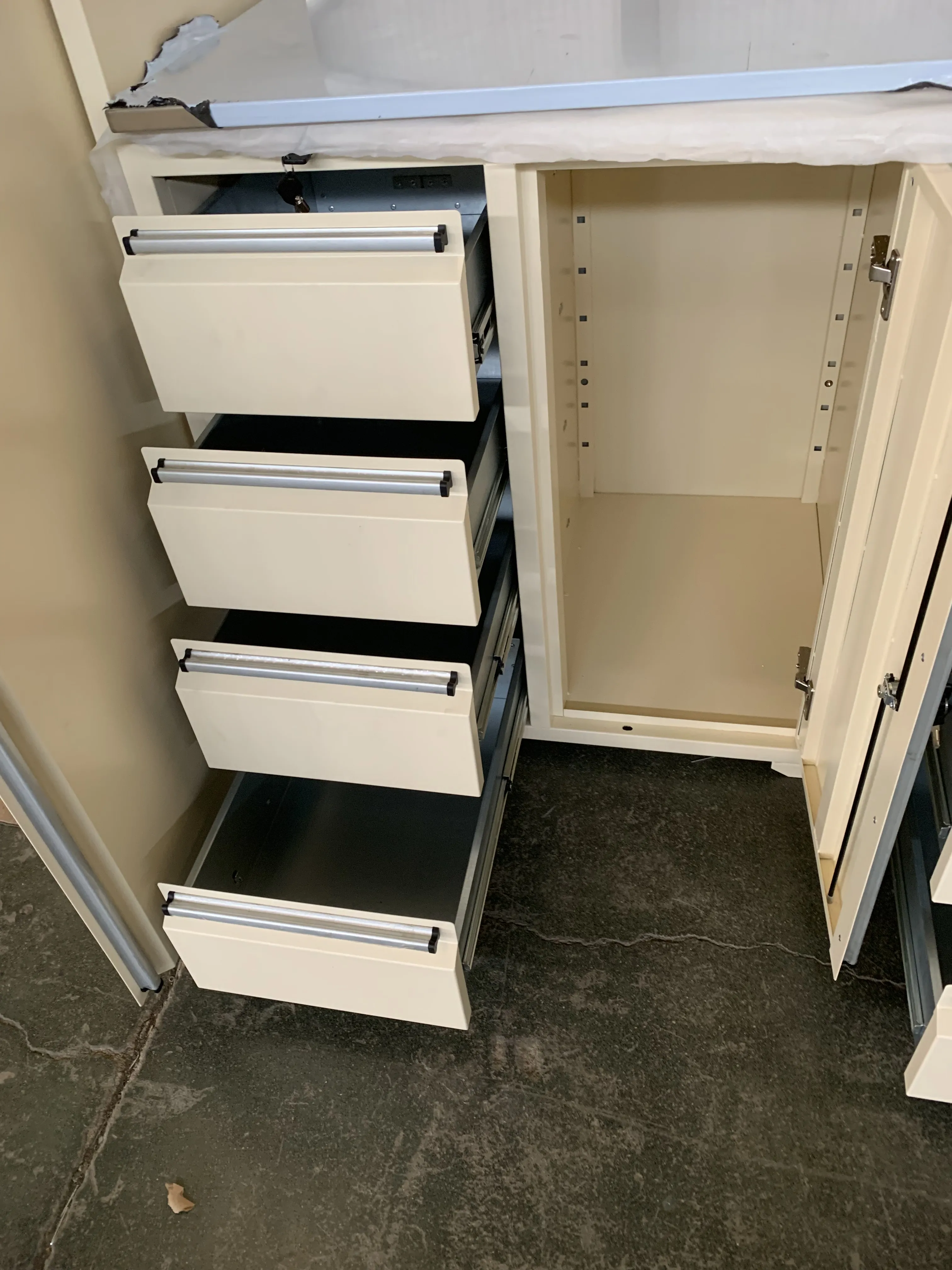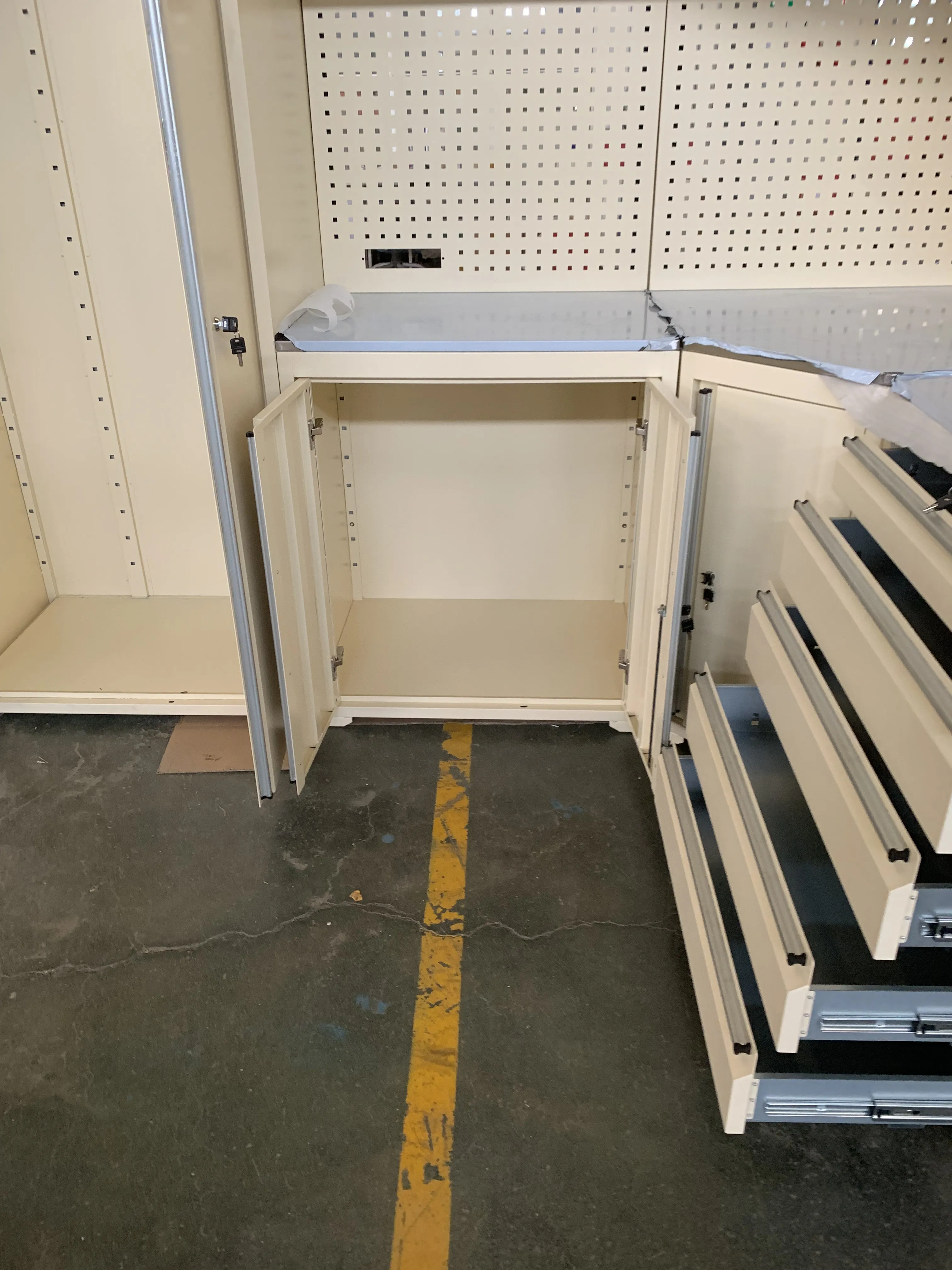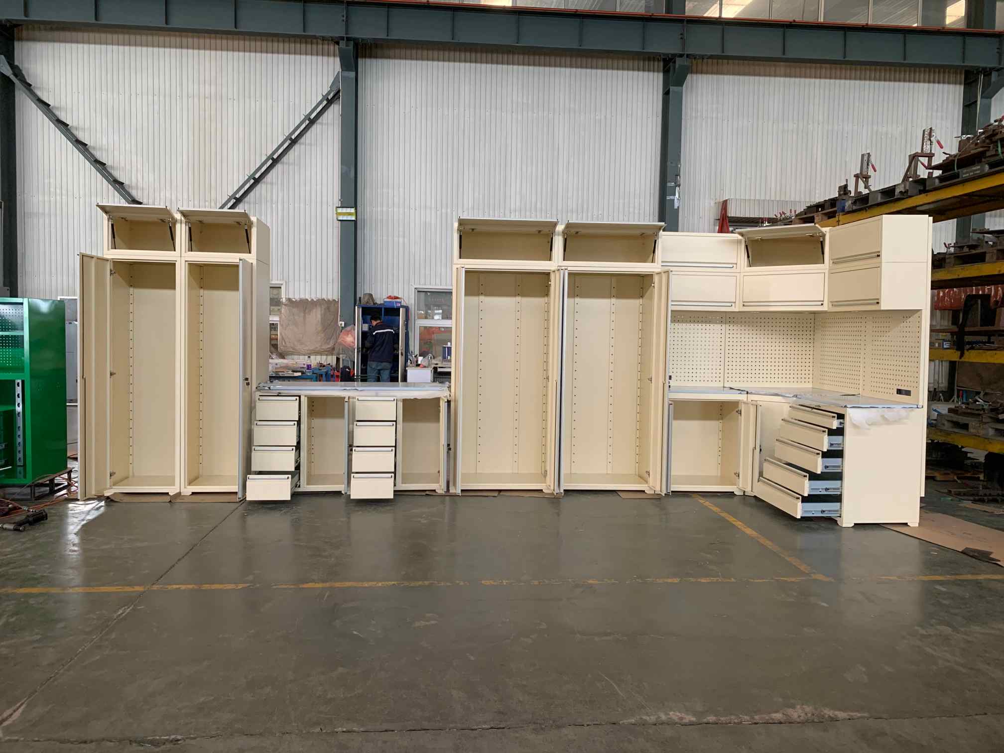 Mit Cyjy's Workbench Garage Cabinet können Sie schwere Sachen wie Werkzeuge, Teile und Haushaltsgegenstände sicher aufbewahren und sich keine Sorgen machen, ob die Schubladenrutschen mit dem Gewicht umgehen können. Dieses intelligente Design macht den Cyjy Black Metal Garage -Kombinationschrank zu einer wirklich praktischen Aufbewahrungsoption für Garagen. Was sind die Funktionen und Details für Workbench Garage Cabinet?
